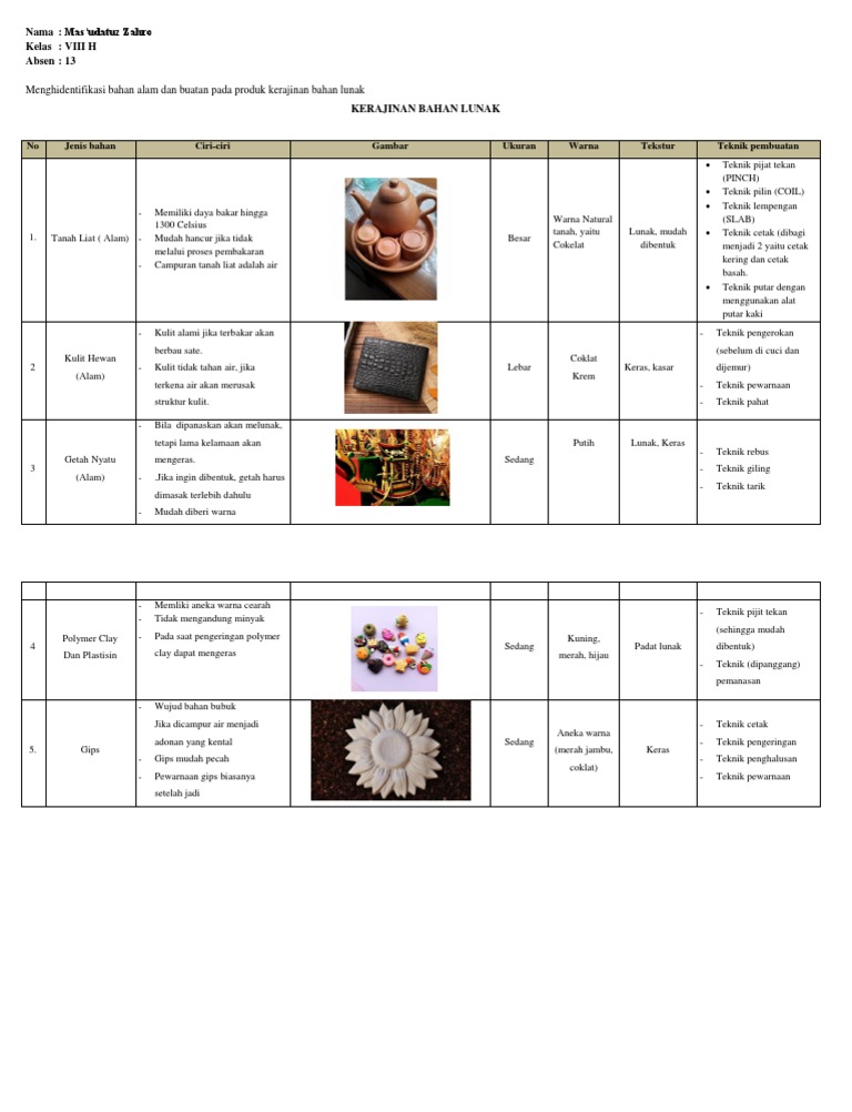 Ciri Ciri Bentuk Ukuran Warna Tekstur Teknik Pembuatan Tanah Liat