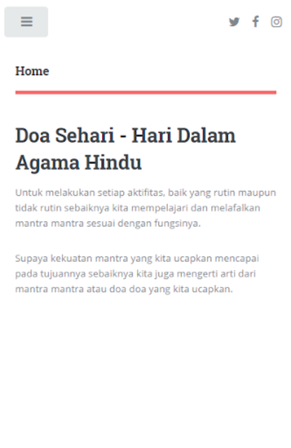 Memuat doa-doa hindu sehari-hari misalnya. Mantra Sehari-Hari Menurut Agama Hindu Beserta Makna atau Doa Sehari Hari Menurut Hindu. Guru Mata Pelajaran Agama Hindu dan Budi Perkerti perlu mamahami alur pikir dari penyebaran aspek materi dalam Pendidikan Agama Hindu sehingga dapat memahami dan menjalakan proses pembelajaran sesuai standar kurikulum 2013.