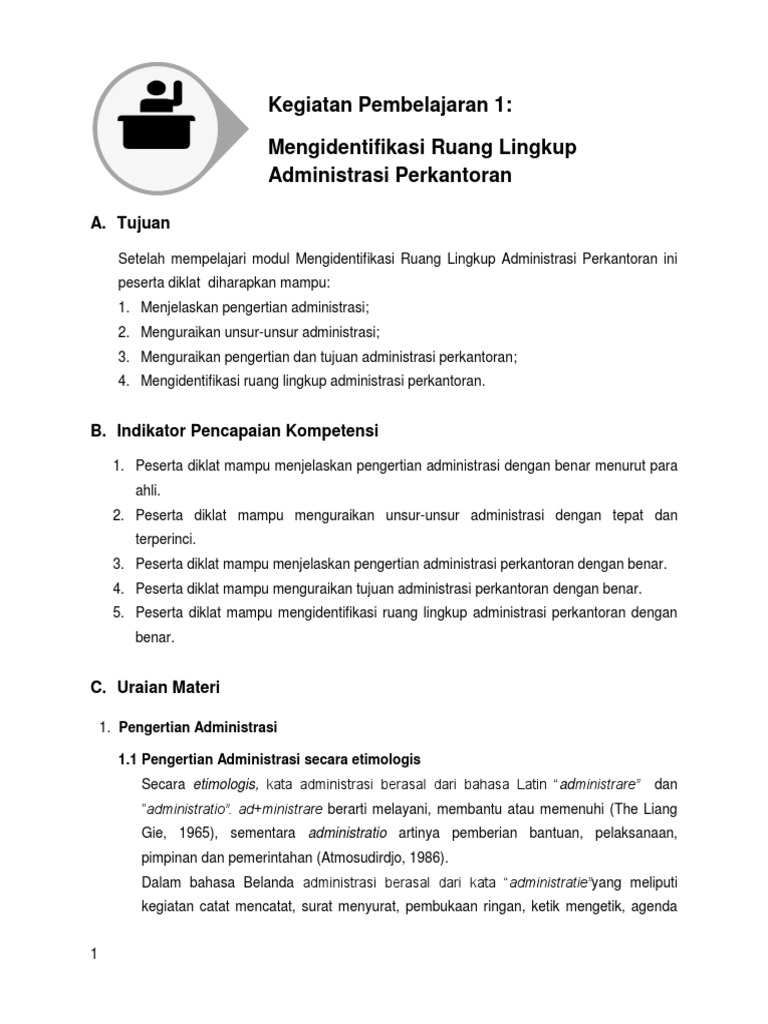 Kb 1 Ruang Lingkup Administrasi Perkantoran